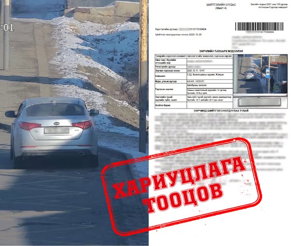 Тээврийн цагдаагийн алба теле камерын ухаалаг систем ашиглан, улсын дугааргүй тээврийн хэрэгслийг илрүүлэн зөрчлийг арилгуулж байна. Зөрчлийн тухай хуулийн 14.7.12 дахь хэсэгт зааснаар улсын дугааргүй тээврийн хэрэгсэлтэй замын хөдөлгөөнд оролцвол 25 нэгж буюу 25.000 төгрөгөөр торгоно.