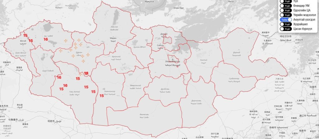 2025.11.14-ний өглөөний 08:00 цагийн байдлаар баруун аймгуудаар хүчтэй шуурч байна. Өнөөдөр Завхан, Архангайн зүүн, Хөвсгөл, Булганы өмнөд, Сэлэнгэ, Төв аймгийн баруун хэсэг, Орхоны нутгаар цасан шуурга шуурна. Говь-Алтай, Баянхонгор, Өвөрхангайн өмнөд хэсэг, Дундговь, Өмнөговийн нутгаар салхи секундэд 18-20 метр, зарим үед секундэд 24 метр хүрч ширүүснэ.