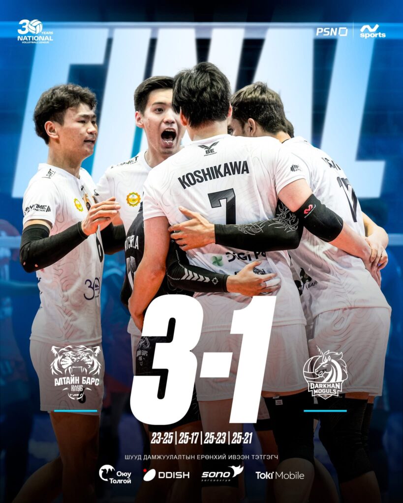 “Алтайн барс-Хилчин”-“Дархан Могулс” баг улирлын эхний тоглолтоо хийж “Алтайн барс” 3-1-ийн харьцаатай хожил байгууллаа. “Алтайн барс”-ийн хувьд сүүлийн 3 тоглолт дараалан хожигдоод байсан. Өнөөдрийн тоглолтод Алтайн барсаас М.Хан 32 оноо, “Дархан Могулс”-аас М.Уранбаяр 30 оноо авч шилдэг тоглолтуудаа үзүүллээ.