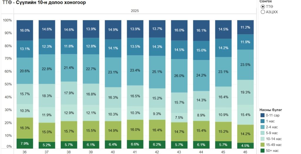 “Вакцины үйлчлэл сайн байгаа. Бид энэ жил 0-5 насны 150 мянга гаруй хүүхдийг хамруулсан. Томуу, томуу төст өвчний тархалт 6-15 насны хүүхдүүд буюу сурагчдын дунд түгээмэл байна. Энэ насныханд улирлын томуугийн вакцин хийгээгүй. Бид ирэх жилээс энэ насныханд хийхээр төлөвлөж байгаа” хэмээв.