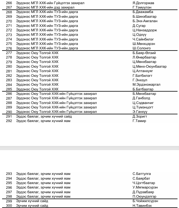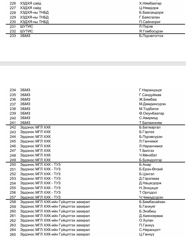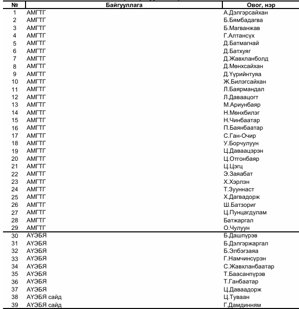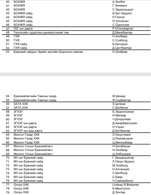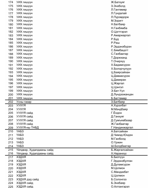 гэрчээр дуудсан хүмүүсийн нэрс