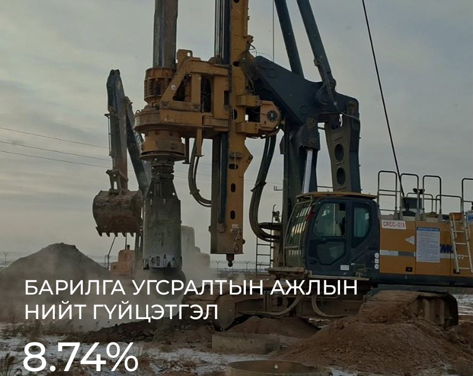 Монголын талын төмөр замын бүтээн байгуулалтын төслийн 8 багц ажлаас төмөр замын дээд, доод бүтцийн ажлыг өвлийн сул зогсолтын хамгаалалтыг хийн түр зогссож, урт гүүрийн барилгын шон суурь байгуулах ажил 45.28 хувьтай хэрэгжиж байна.