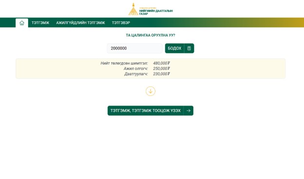 Нийгмийн даатгалын газраас онлайнаар цалингаас төлөх НДШ мөн тэтгэвэр, тэтгэмжээ тооцох боломжийг олгожээ. Өөрөөр хэлбэл, иргэн та https://ndaatgal.vercel.app/home хаягаар орж, цалингийн хэмжээгээ оруулан нийгмийн даатгалын шимтгэлээ тодорхойлуулж болохоос гадна,