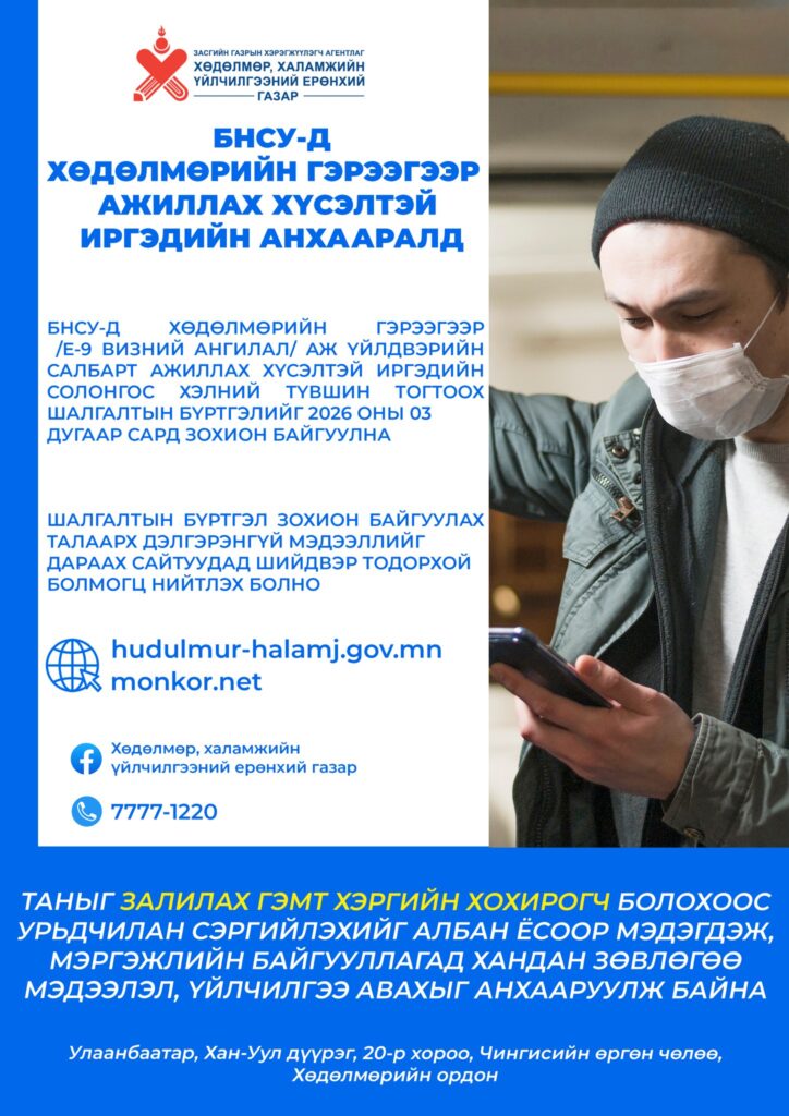 БНСУ-д хөдөлмөрийн гэрээгээр аж үйлдвэрийн салбарт ажиллах хүсэлтэй иргэдийн солонгос хэлний түвшин тогтоох шалгалтын бүртгэлийг 2026 оны 03 дугаар сард зохион байгуулах юм.