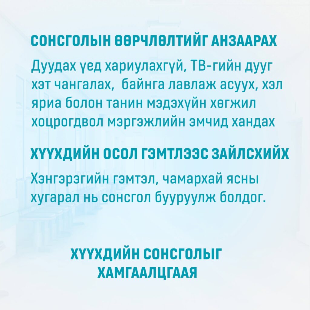 - Төрсний дараа нярайг сонсголын скрининг шинжилгээнд хамруулах