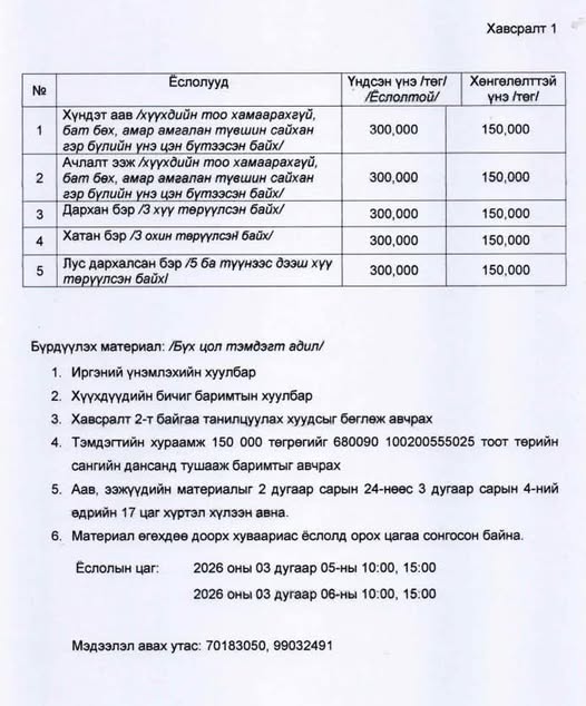 Энэ удаа Олон улсын эмэгтэйчүүдийн баярыг угтаж “Дархан бэр”, “Уран бэр”-ийн тэмдэг, өргөмжлөл авах хүсэлтийг авч дууссан. “Дархан бэр”-ийн өргөмжлөл, тэмдэг дууссан. Манай төрийн бус байгууллагаас энэ удаад 50 ээжид “Дархан бэр” өргөмжлөл өгөх гэж байна. Хүсэлт авч дууссан ч нэмэлтээр дахин 5 тэмдэг, өргөмжлөл гаргасан. Мөн л хурдан дууслаа” гэв. Тухайн өргөмжлөл, тэмдгийн одоогийн ханш 160 мянган төгрөг. 160 мянгаар 50 ээж “Дархан бэр” тэмдэг, өргөмжлөл авсан гэж тооцвол энэ байгууллага 8 сая төгрөгийн ашигтай ажиллаж буй хэрэг.