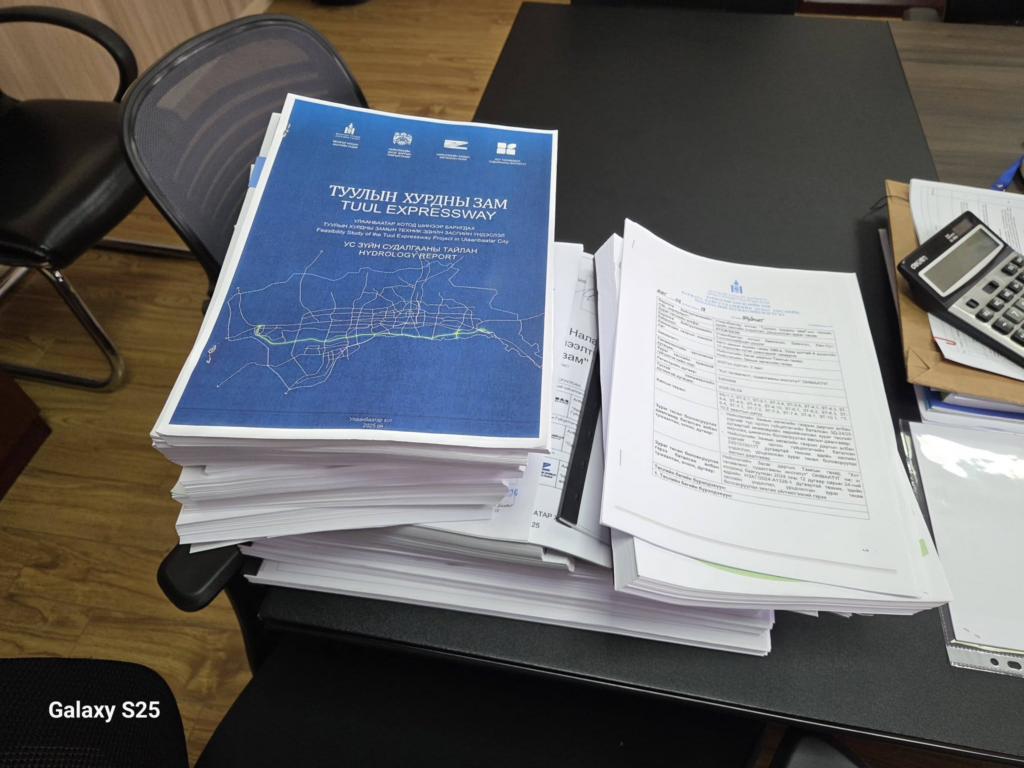 “Нийслэлийн замын хөгжлийн газраас “Туул хурдны зам” барих төслийн хүрээнд хийгдсэн ТЭЗҮ, БОННҮ тайлан, ажлын зураг холбогдох бичиг баримтууд болох гуравдугаар сарын 31-ээр огноологдсон 16 хавсралт бүхий бичиг баримтыг дөрөвдүгээр сарын 01-нд хүлээн авлаа. Баярлалаа.