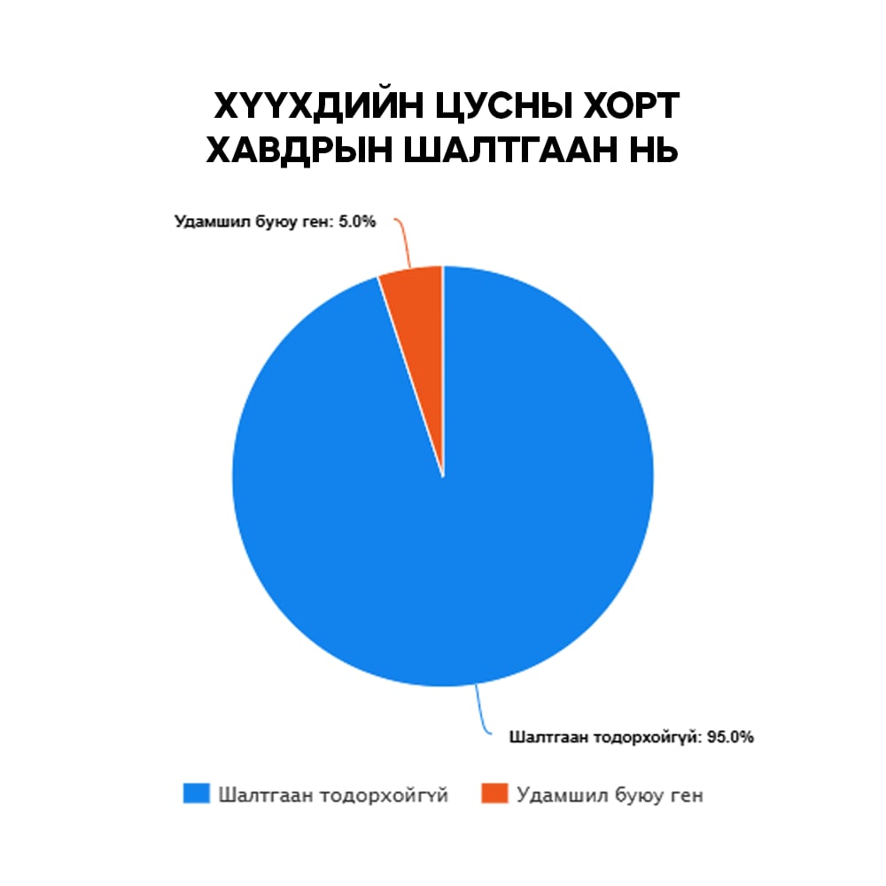 Тэгвэл цусны хорт хавдар туссан хүүхдүүдийн 95 хувийнх нь шалтгаан тодорхойгүй байдаг. Үлдсэн 5 хувь нь удамшил буюу гентэй холбоотой гэж үздэг гэдгийг ЭХЭМҮТ мэдээлж буй.