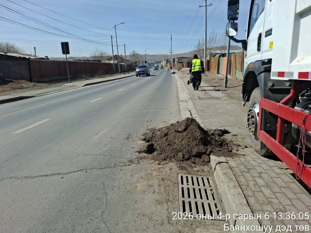 Авто замын борооны ус зайлуулах шугамын хэвийн үйл ажиллагааг хангах, үерийн эрсдэлээс урьдчилан сэргийлэх зорилгоор төлөвлөгөөт цэвэрлэгээний ажлыг үе шаттайгаар зохион байгуулж байна. Тухайлбал, СХД-ийн 8, 9, 18 дугаар хороо, Баянхошуу дэд төв, Жанцан болон Хайгуулчдын гудамжны борооны усны шугамын цэвэрлэгээг хийж гүйцэтгэлээ. Цэвэрлэгээний ажлын хүрээнд шугам хоолойд хуримтлагдсан лаг, хог хаягдлыг бүрэн зайлуулж, ус нэвтрүүлэх чадварыг сайжрууллаа.